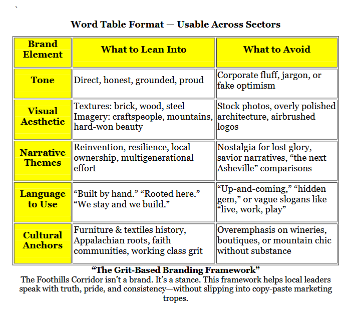 The Foothills Corridor doesn’t need a slick rebrand—it needs a story that reflects its truth. For too long, the narrative around this region has been shaped by outsiders: developers pitching lifestyle fantasy, politicians romanticizing the past, or marketers slapping on slogans that sound nice but say nothing.