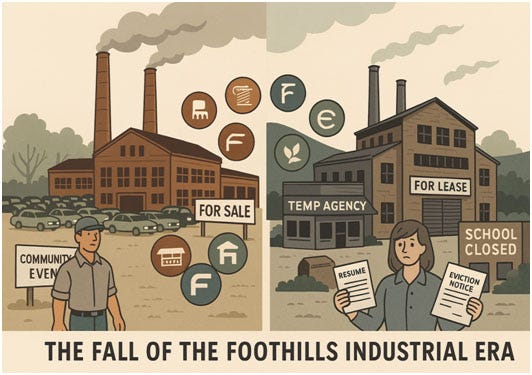 If there’s one thing we should learn from this collapse, it’s this: the decline wasn’t inevitable. It was the result of decisions—made in boardrooms and policy circles—that treated places like the Foothills Corridor as expendable. We weren’t too slow to adapt. We were deliberately left behind.